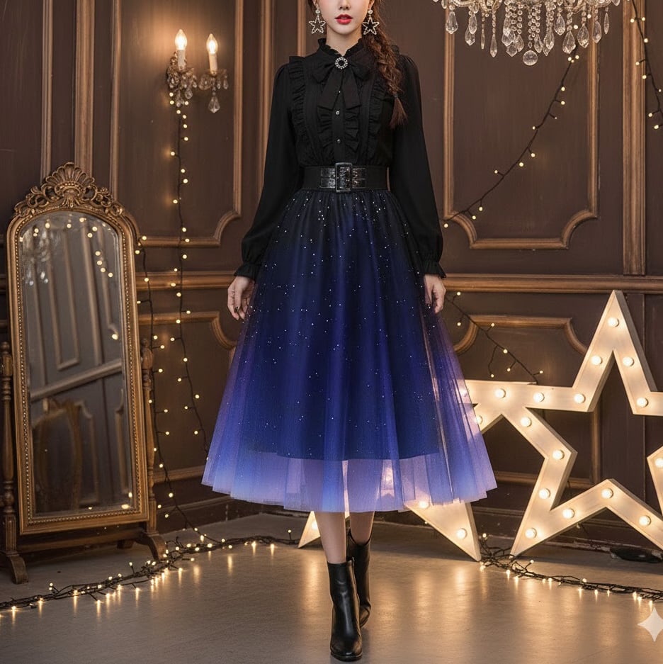 《星空スカート》グラデーション・ラメチュール ・フレア- Aljanah(全2色)