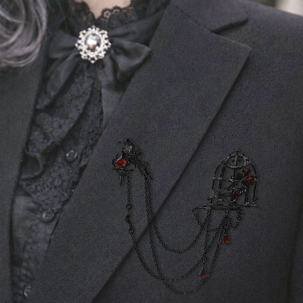 《鴉籠に捕らえた煌めきの薔薇》チェーンブローチ/襟ブローチ