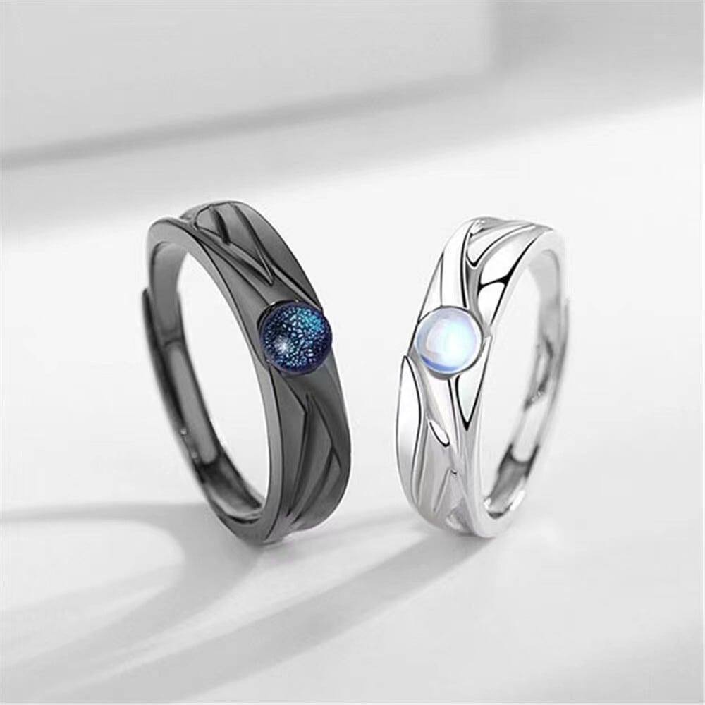深い藍色の真夜中と青白い月光を閉じ込めたようなペアリングです。