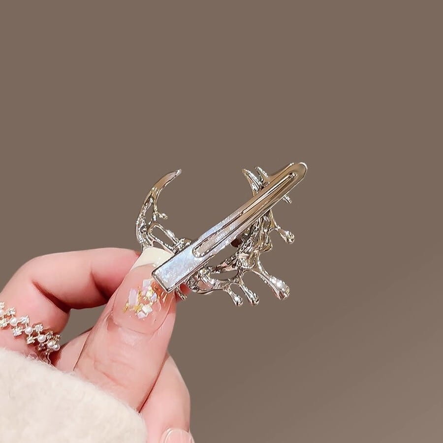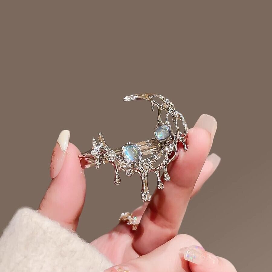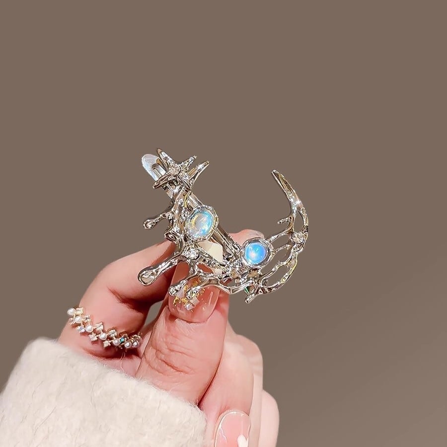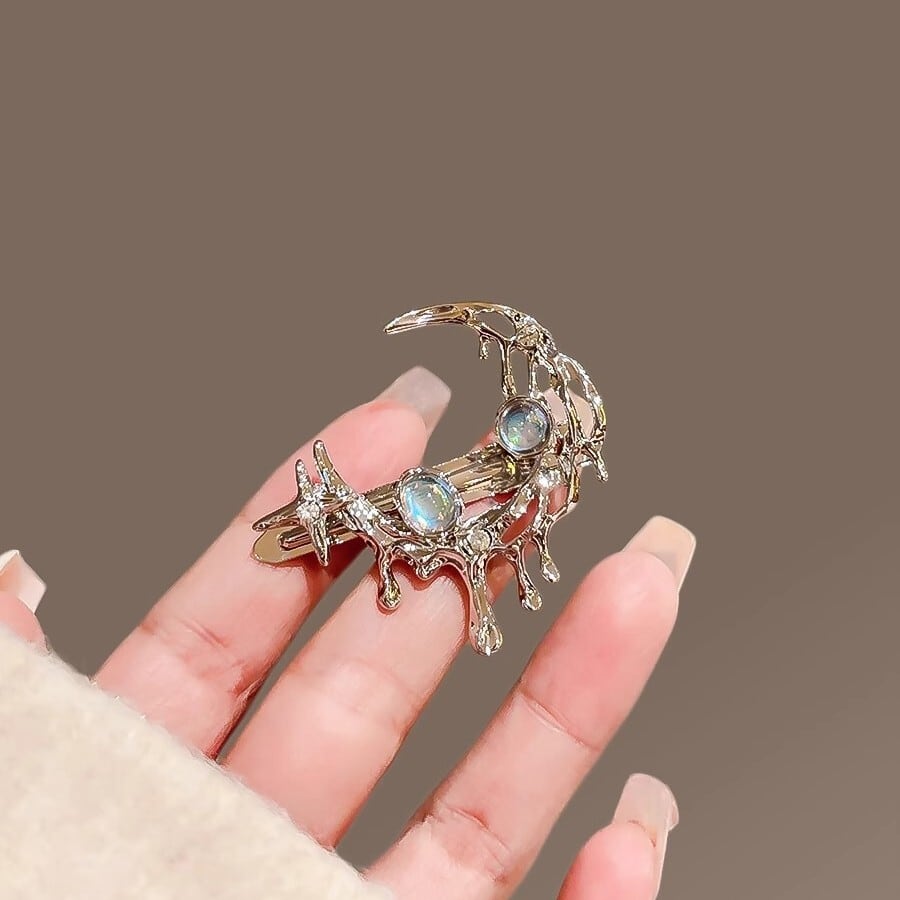 《夜に溶ける星月》メタリック・シルバー・ヘアクリップ