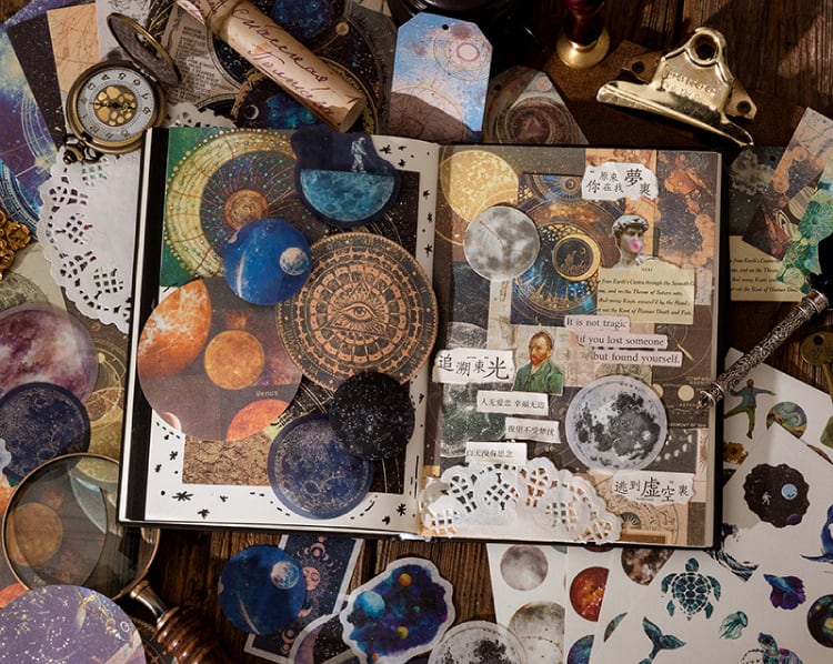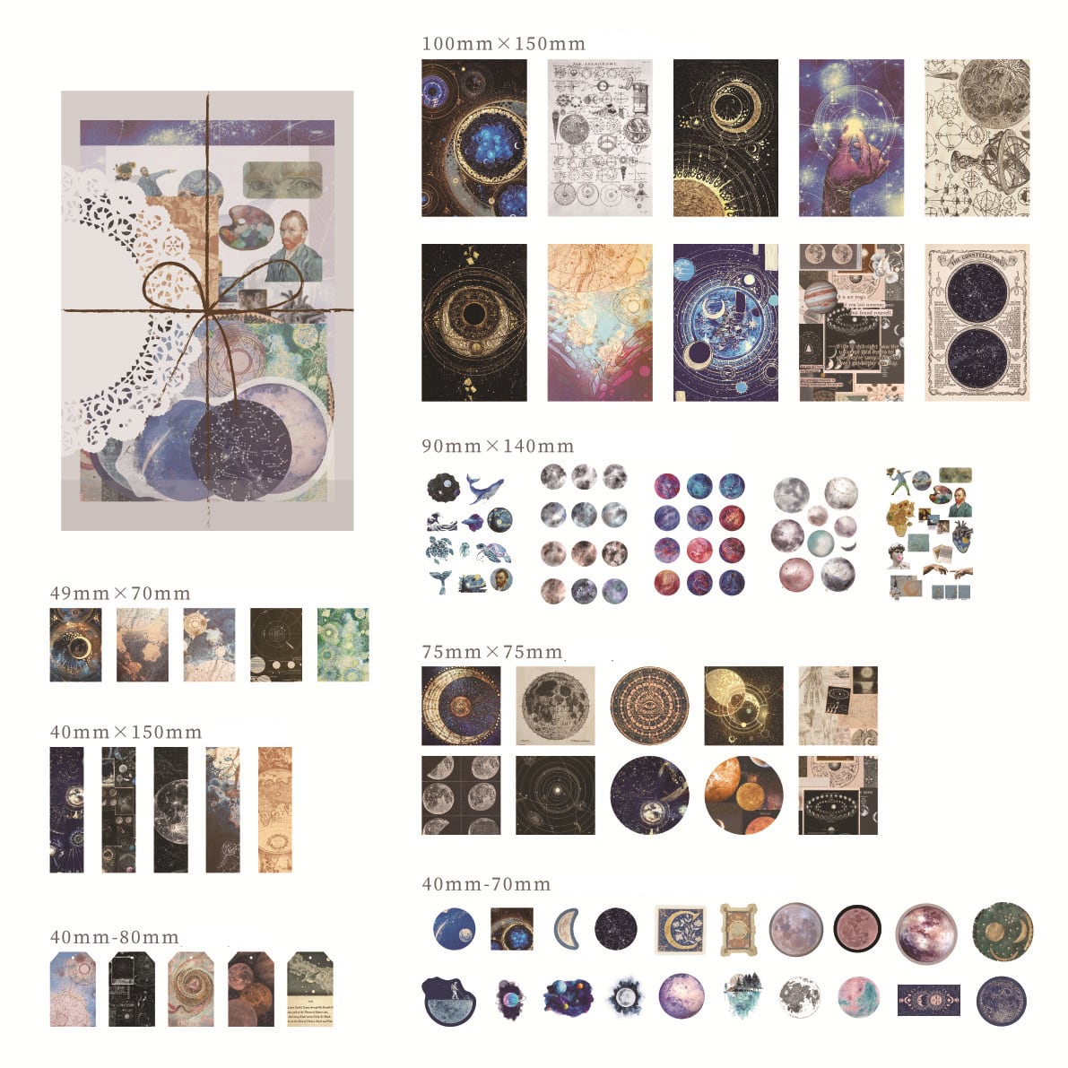 天体コラージュ素材《散落星海》レトロ・ステッカー(83枚入)