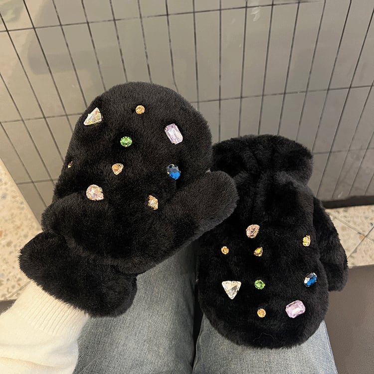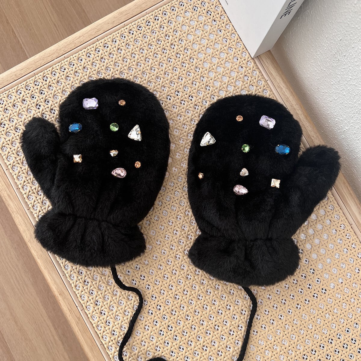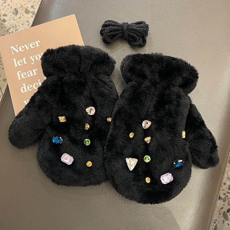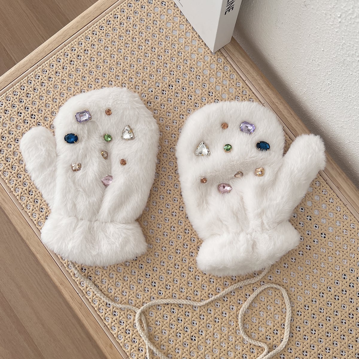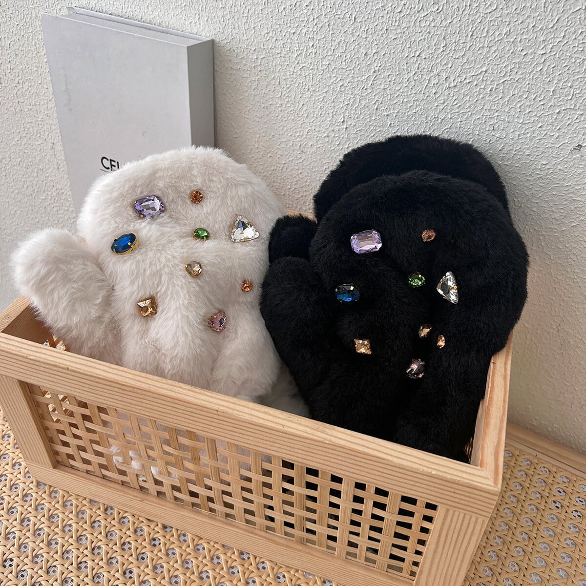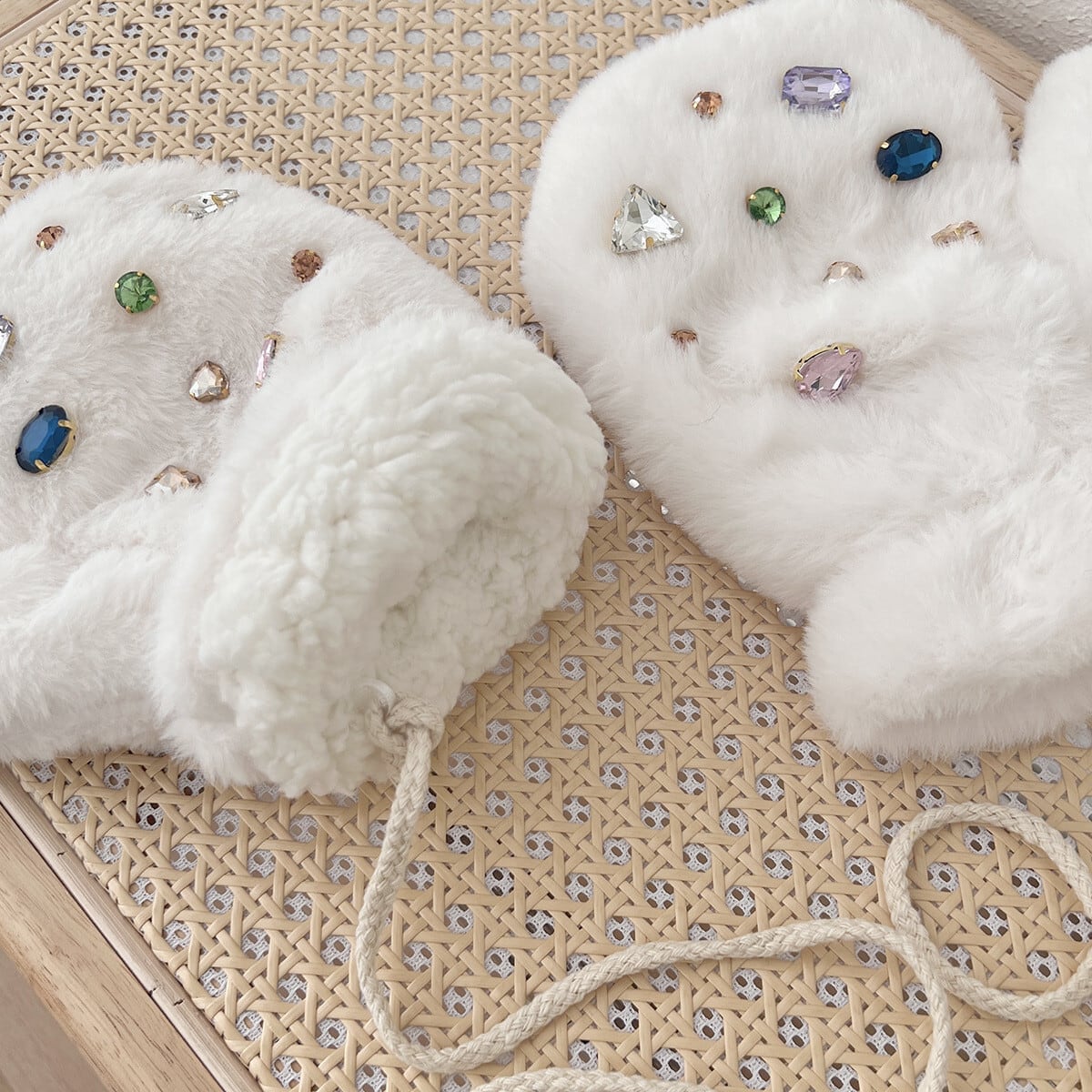 《ひみつの宝物》ビジュー・ふわふわミトン/手袋(全2色)