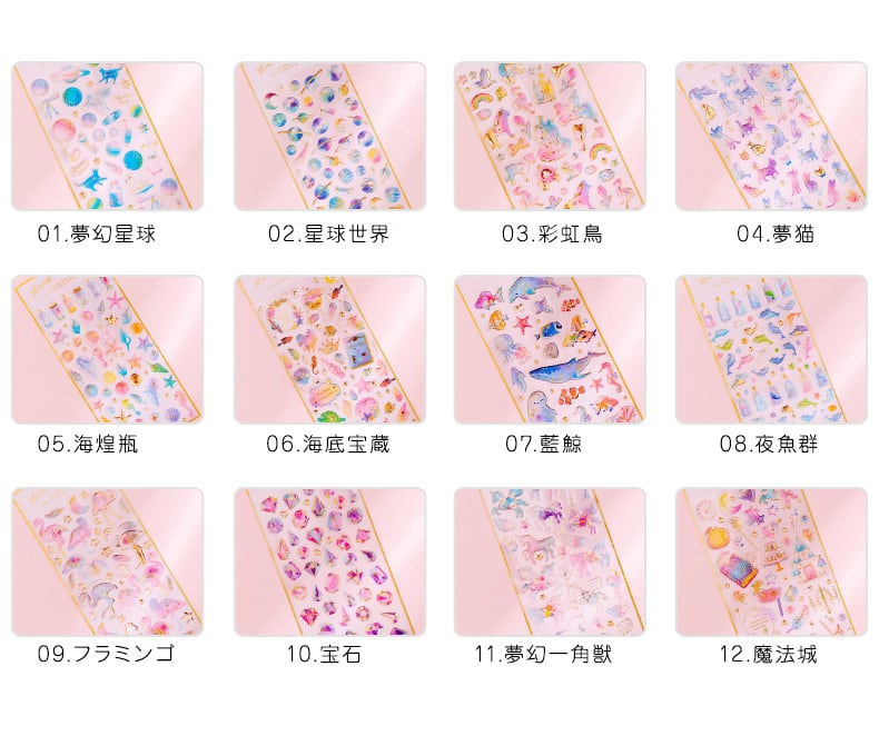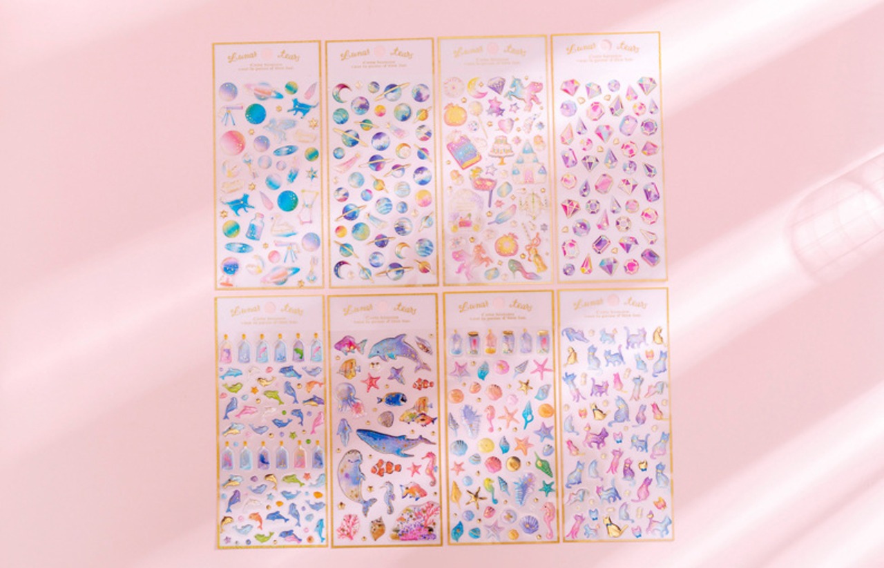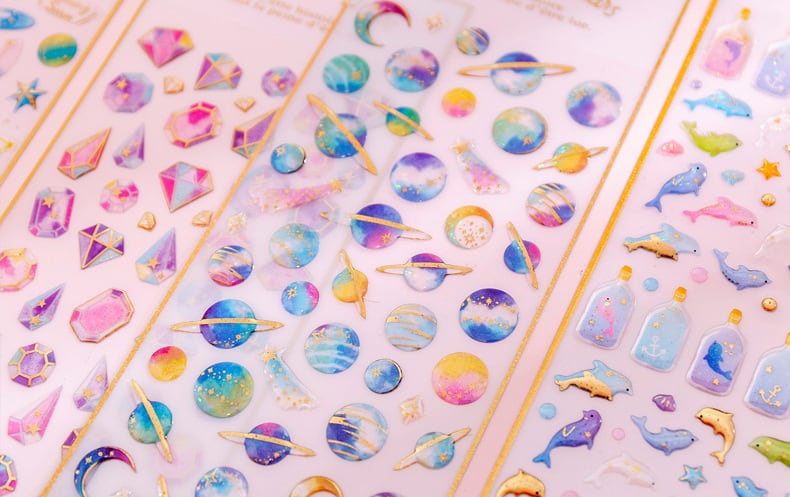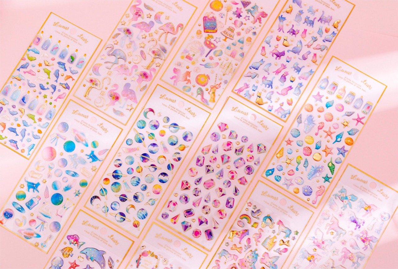 星が煌めく真夜中の魔法がかかったような、キラキラでぷっくりした立体シール。
