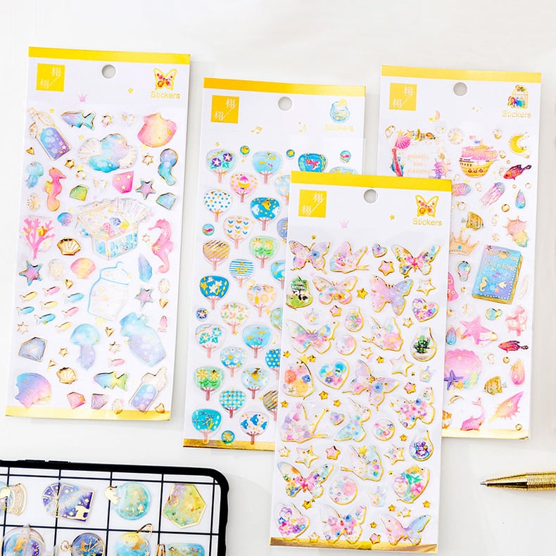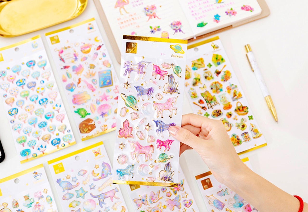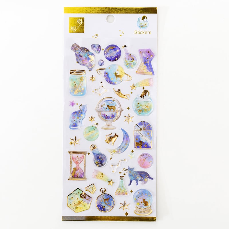 星が煌めく真夜中の魔法がかかったような、キラキラでぷっくりした立体シール。