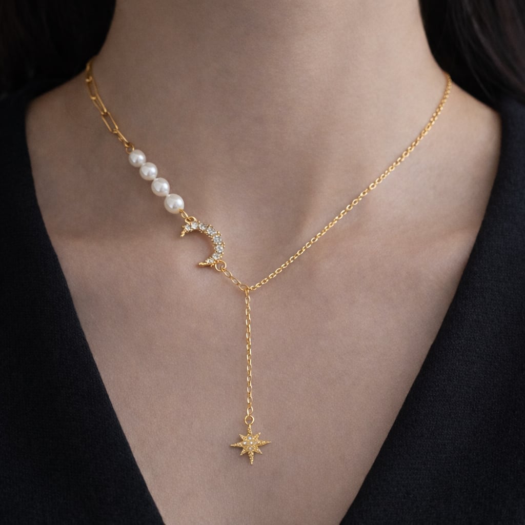 月の光がそっとほどけて星へと繋がっていく瞬間をかたどったようなネックレス。