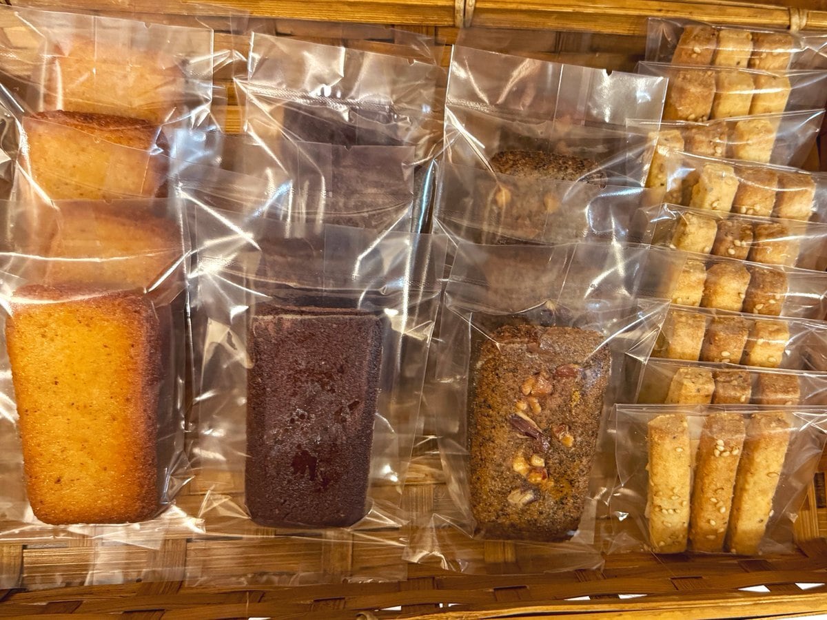 原材料名:発酵バター、小麦粉、卵、砂糖、レーズン、胡桃、アーモンドプードル、はちみつ、ラム酒、牛乳、塩/トレハロース、ベーキングパウダー