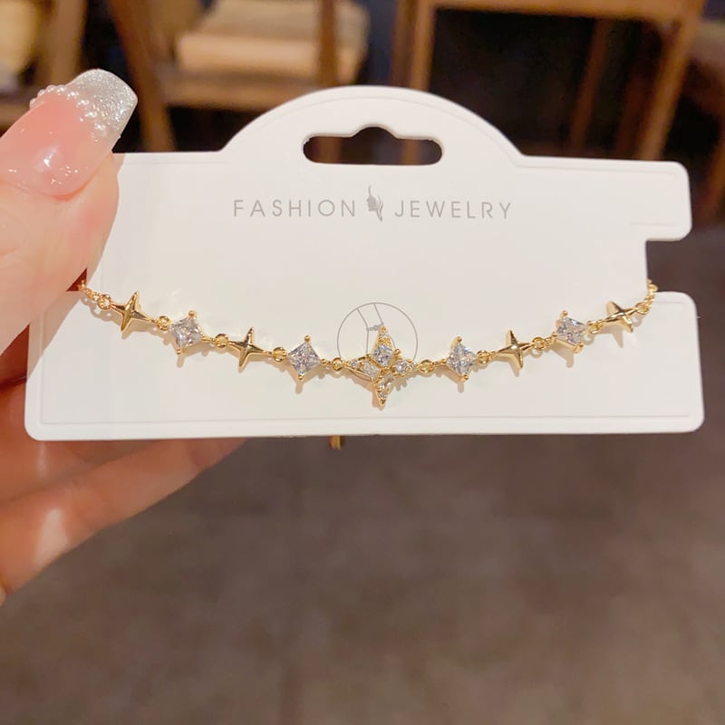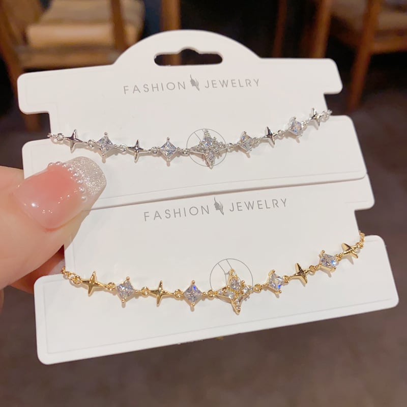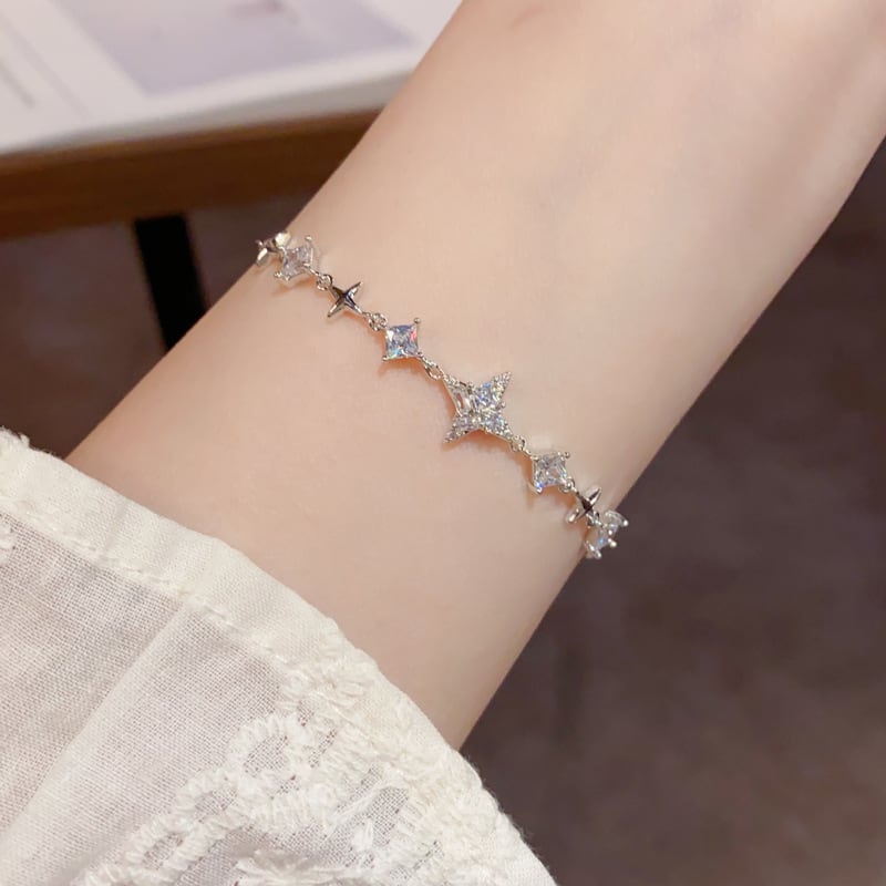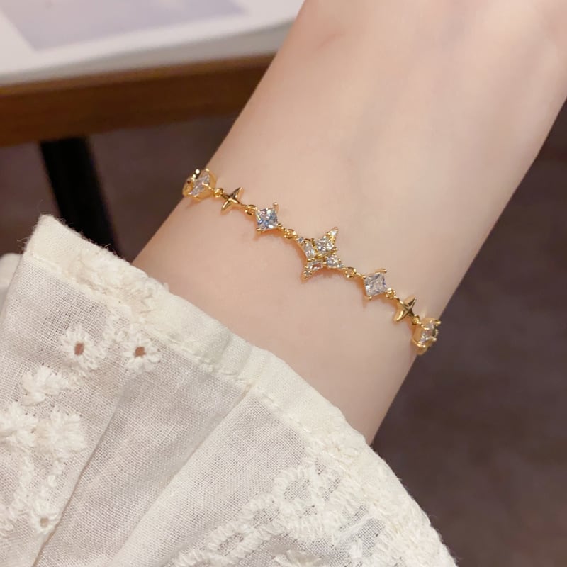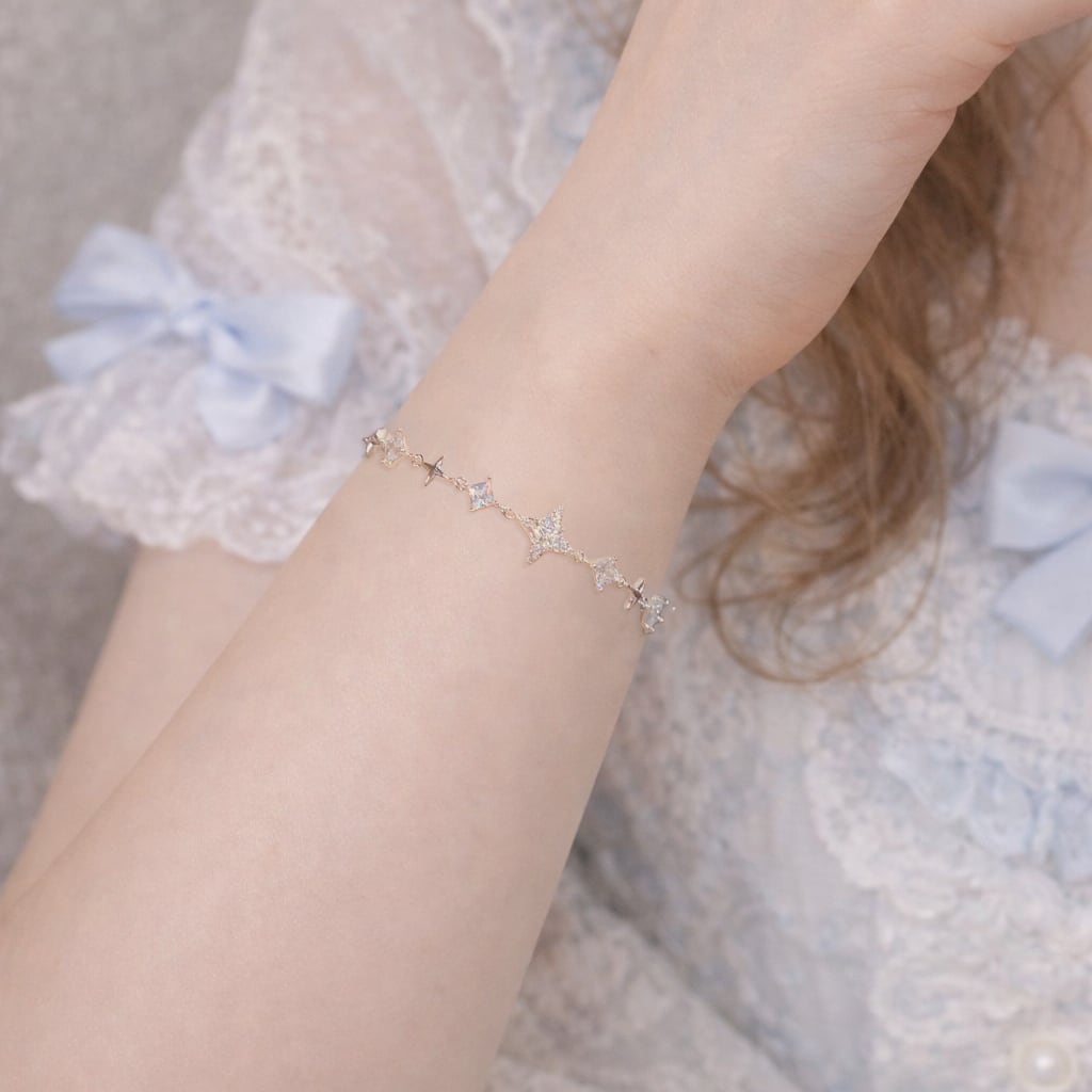 煌めきモチーフと澄んだ輝きを放つストーンが連なり、手元にやさしいきらめきを添えてくれます。