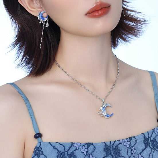 シンプルなチェーンと軽やかなサイズ感で日常にも自然に溶け込みながら、ふとした仕草のたびに幻想的な輝きを演出します。