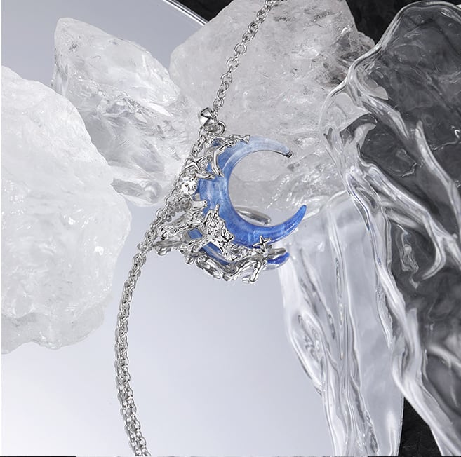 透明感のあるブルーグラデーションの三日月は、まるで夜をそのまま閉じ込めたような美しさ。