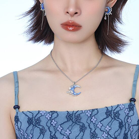 シンプルなチェーンと軽やかなサイズ感で日常にも自然に溶け込みながら、ふとした仕草のたびに幻想的な輝きを演出します。