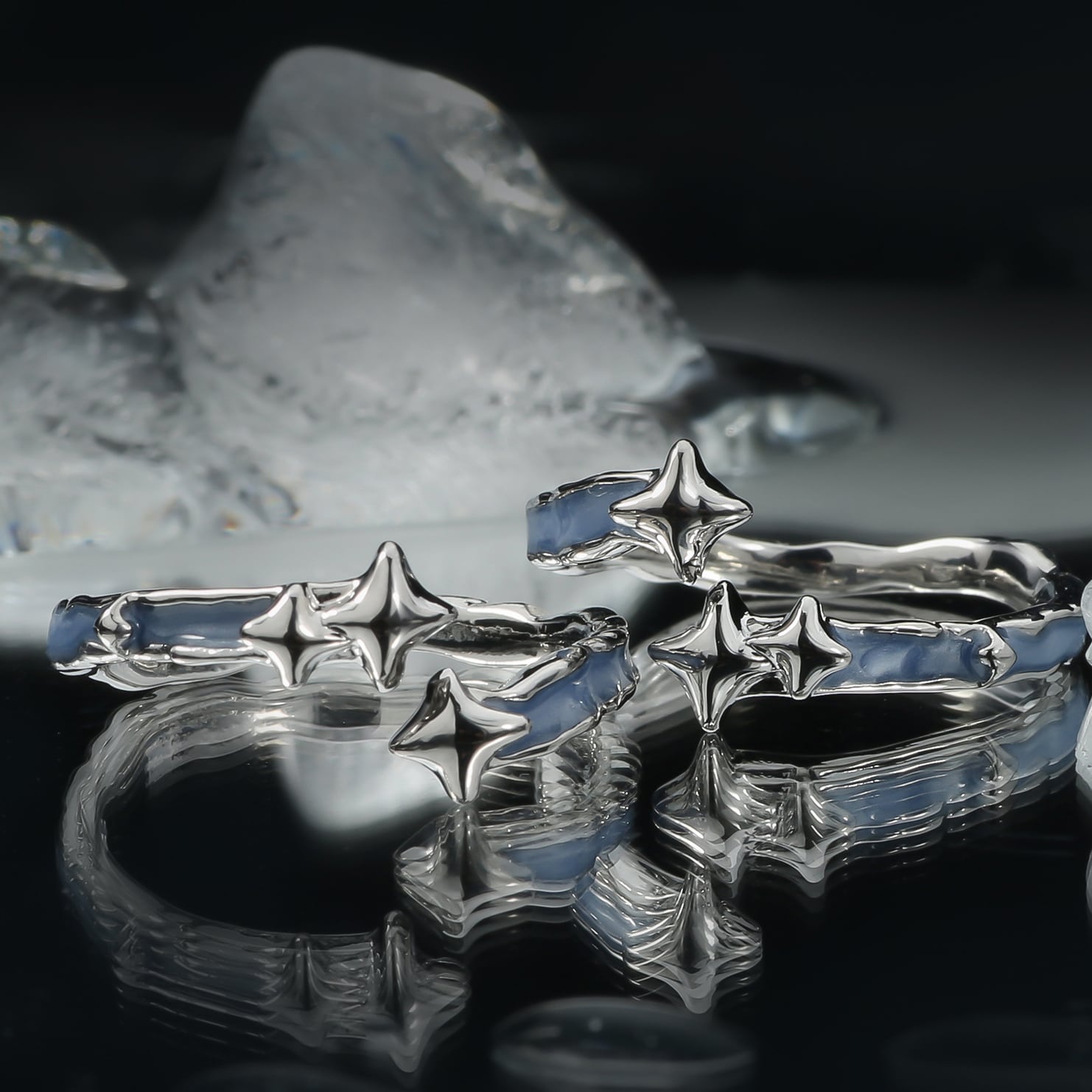 淡いブルーのラインと立体的な星のモチーフが印象的なフリーサイズリングです。