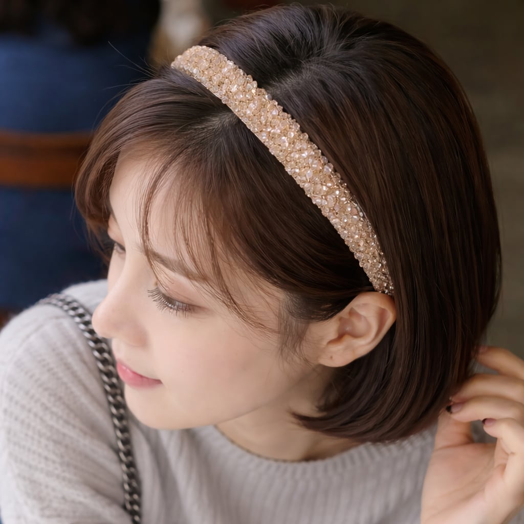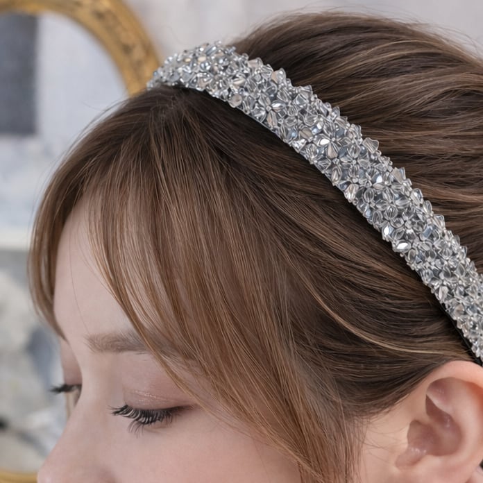 繊細な輝きをぎゅっと閉じ込めた華やかなビジューカチューシャ。