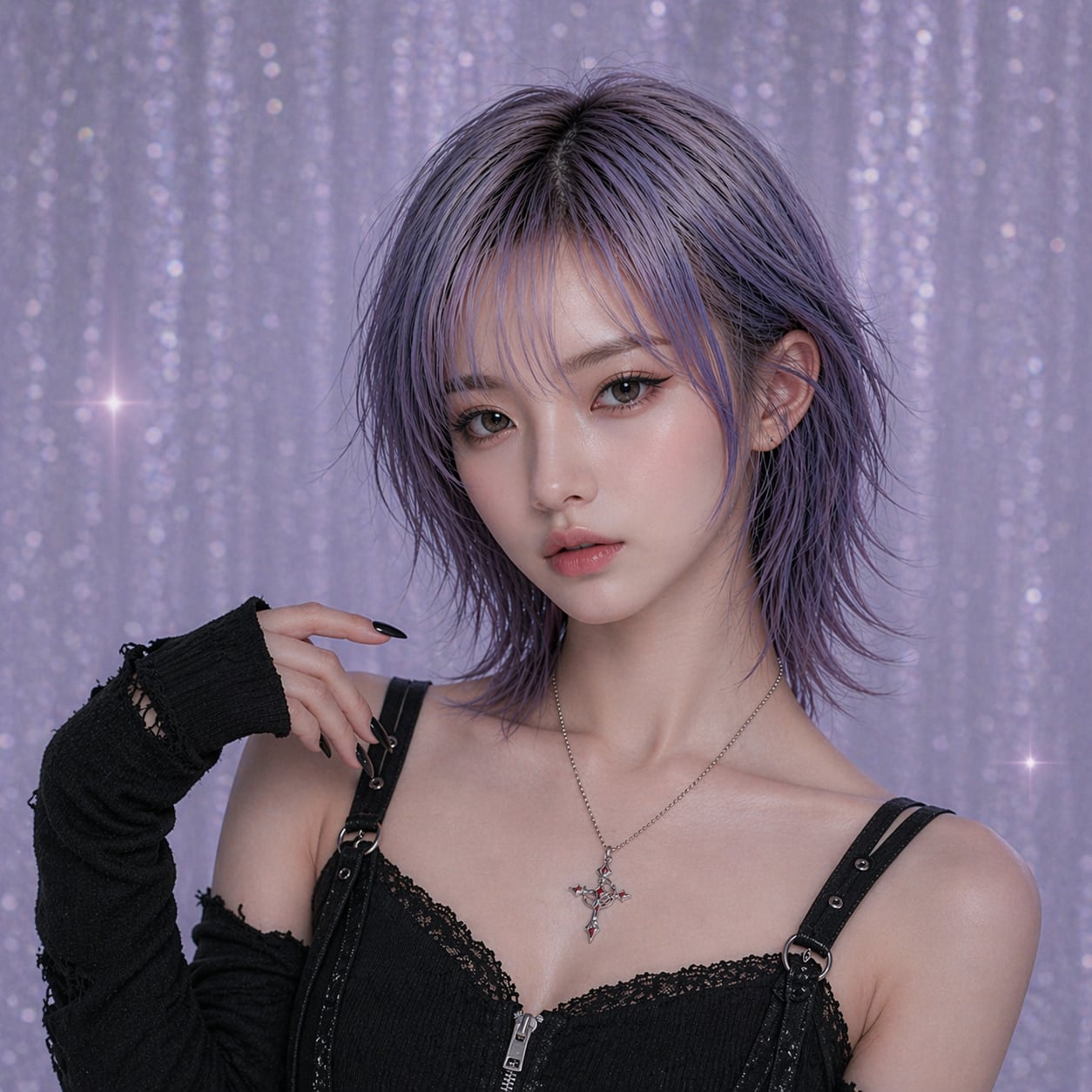 深い夜の中で浮かび上がるような印象的なシルエットが胸元に残ります。