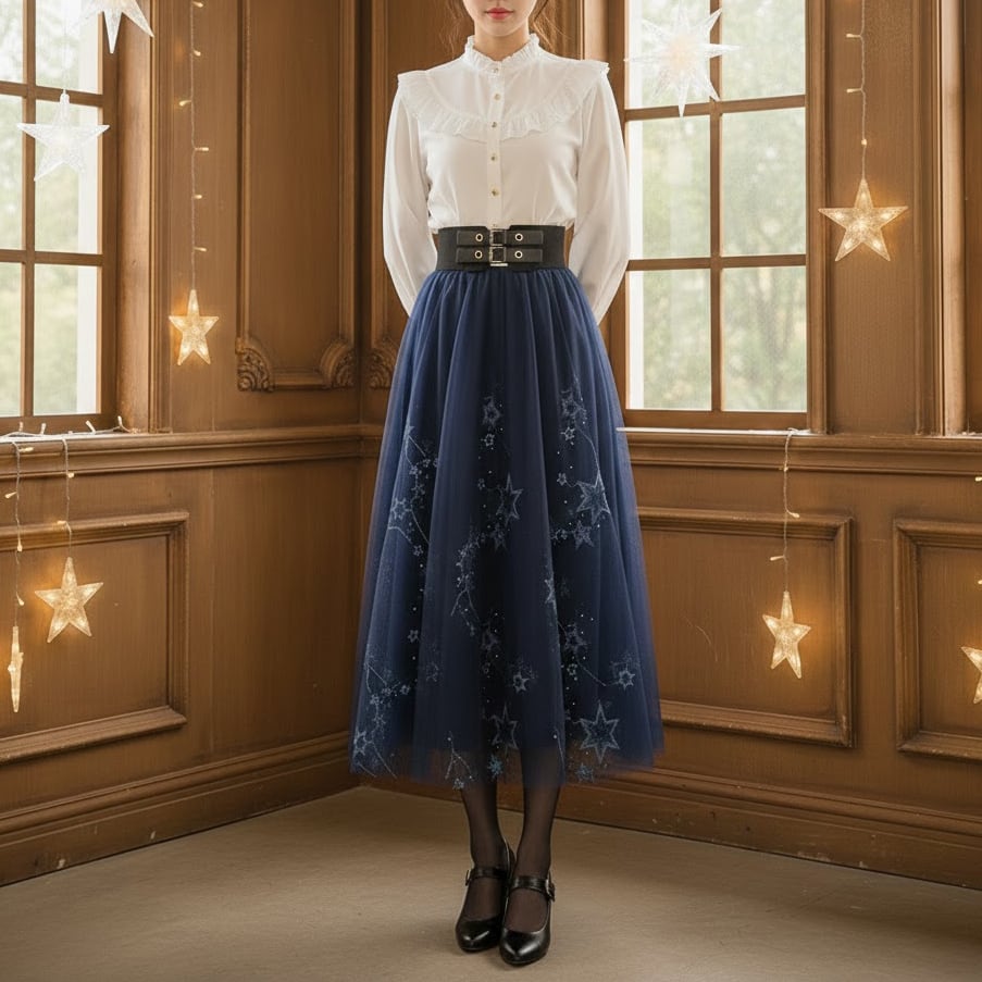 星空のスカート 夜空 星座 刺繍 チュール - Constellation(全4色)