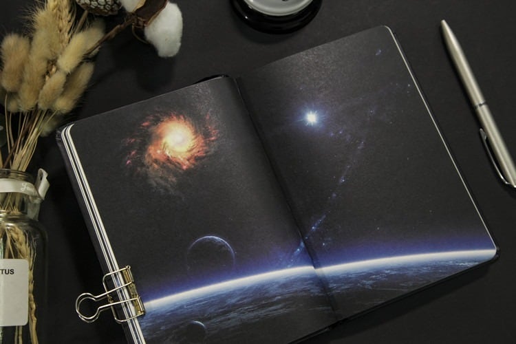 エンボス加工の立体的な惑星が美しいハードカバーのノート。お誕生日のお祝いや記念品として、プレゼント・ギフトにおすすめです。