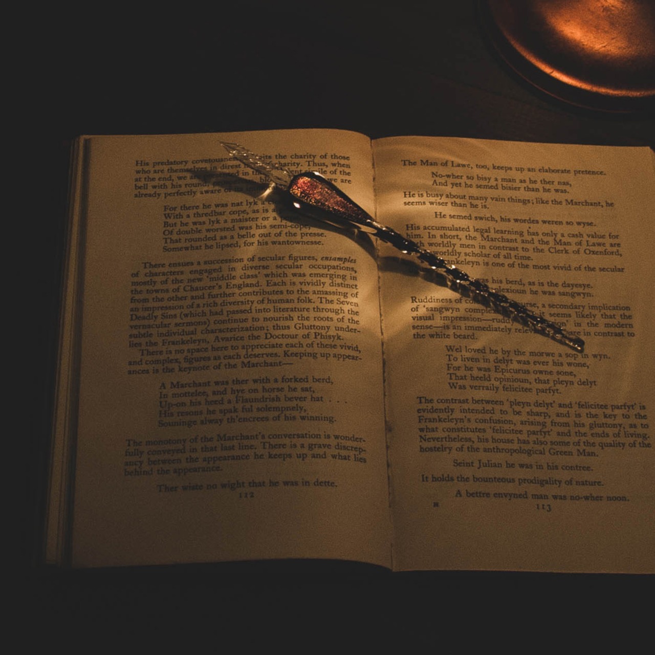 色々な夜空を閉じ込めたような硝子細工が美しいペンです。