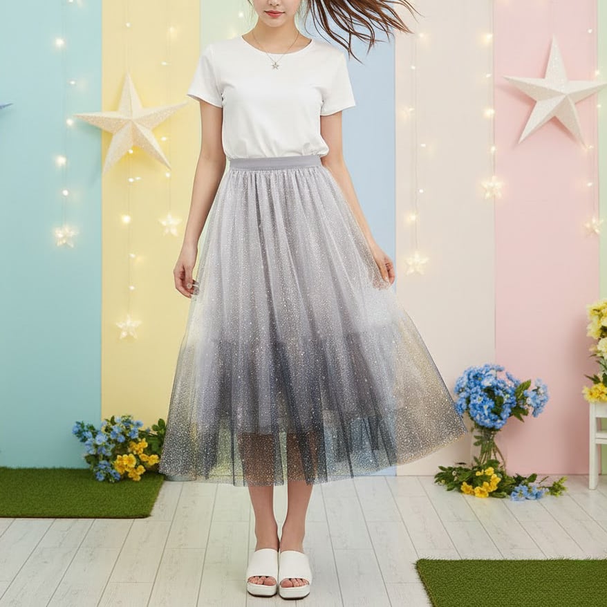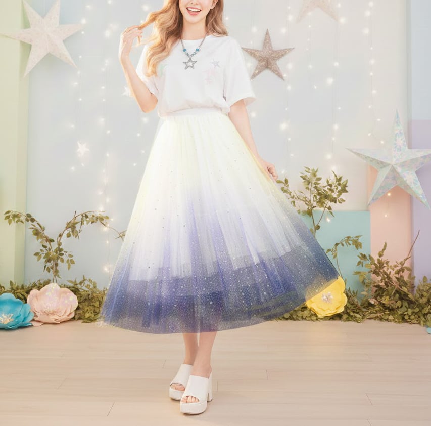 星空のスカート 夜空グラデーション 星ラメ チュール フレア - Pleiades