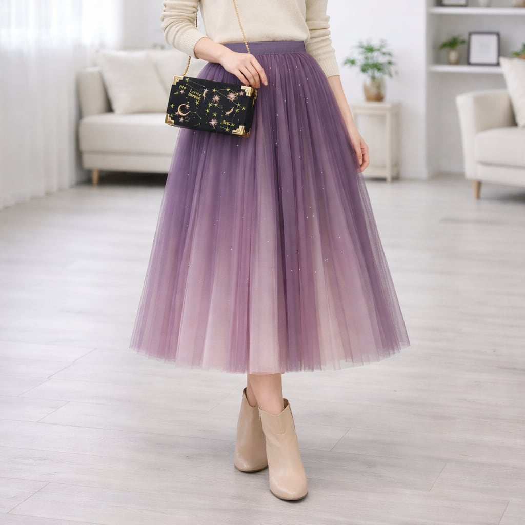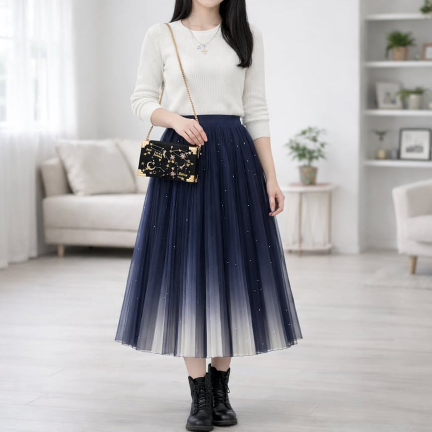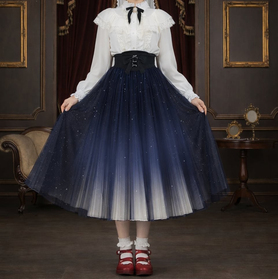 星空 グラデーション チュール プリーツ スカート - Proxima(全4色)