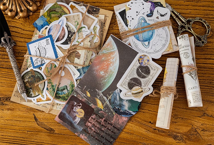 天体コラージュ素材《宇宙神秘物語》レトロコレクション/シール・ステッカー・ペーパー150種入り