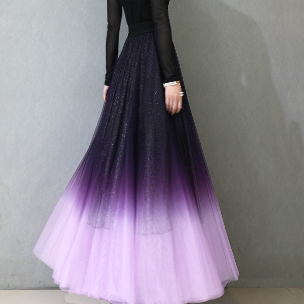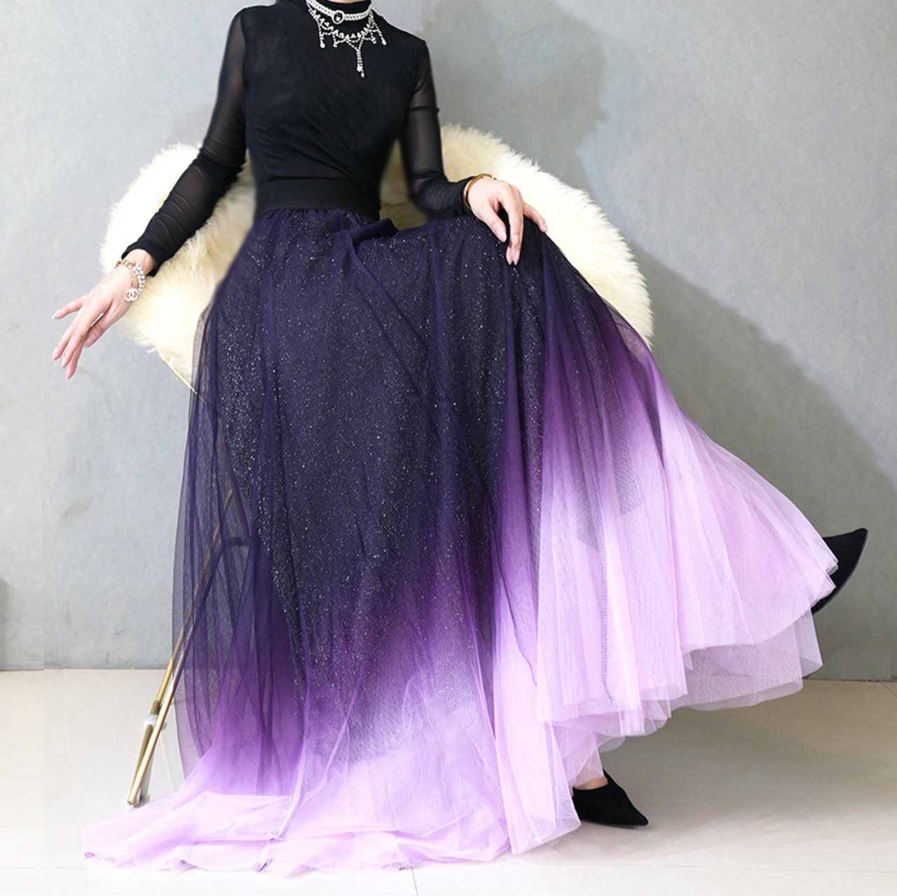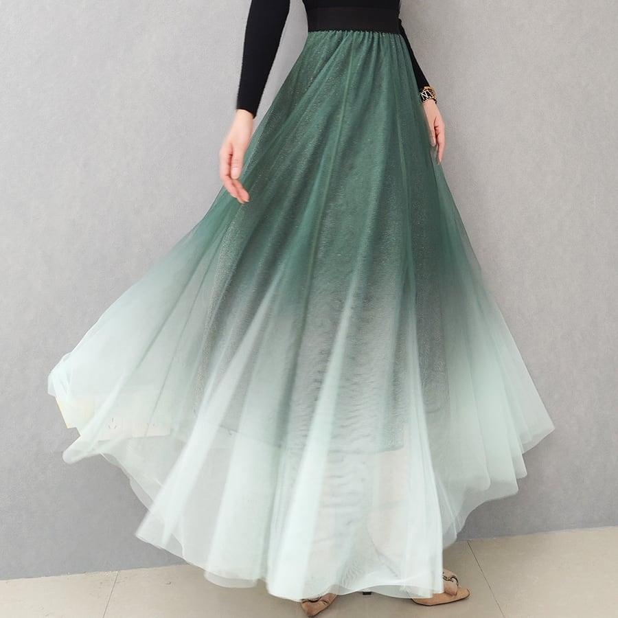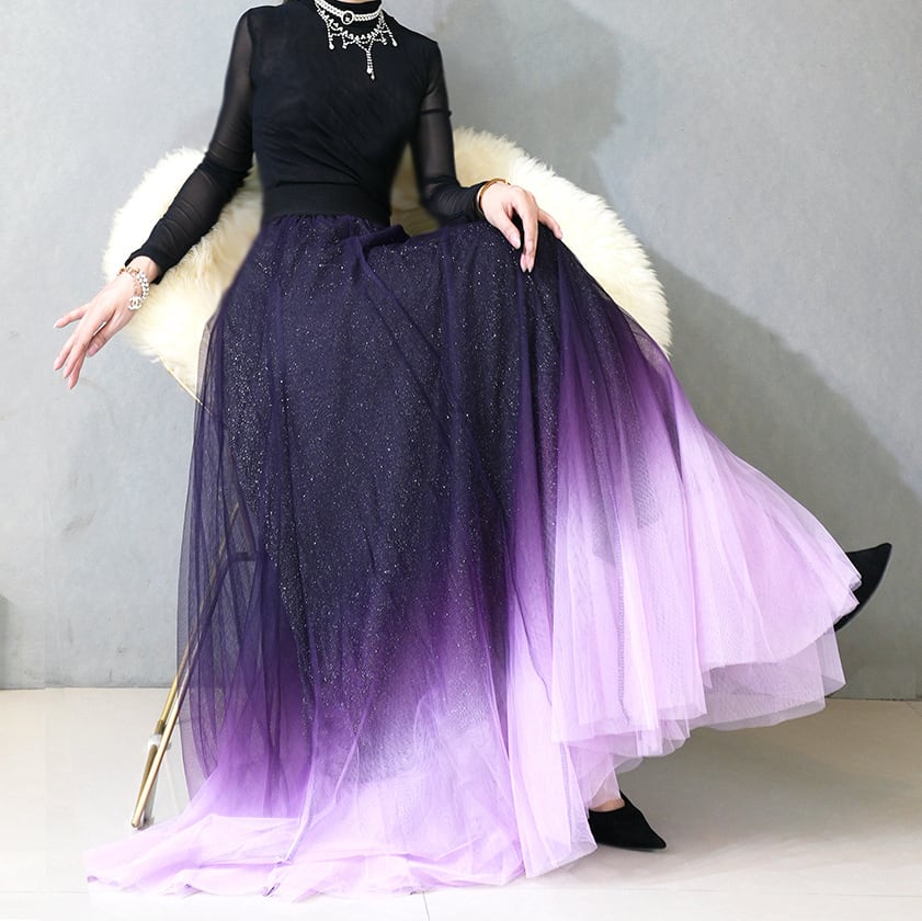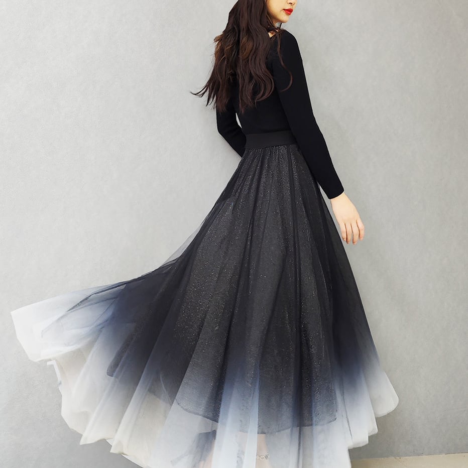 星空ロングスカート ・グラデーション・チュール・グリッター - Adhil(全4色)