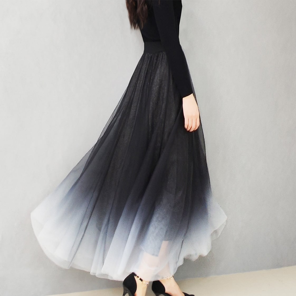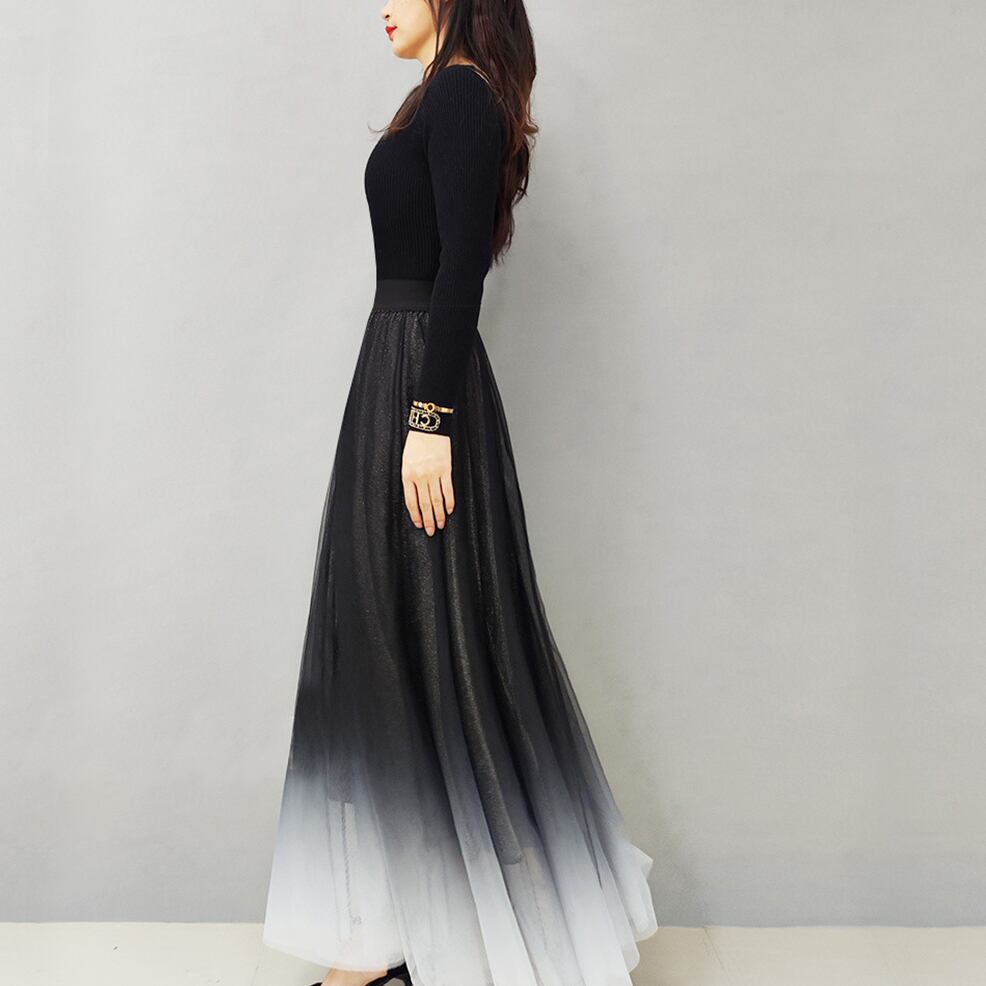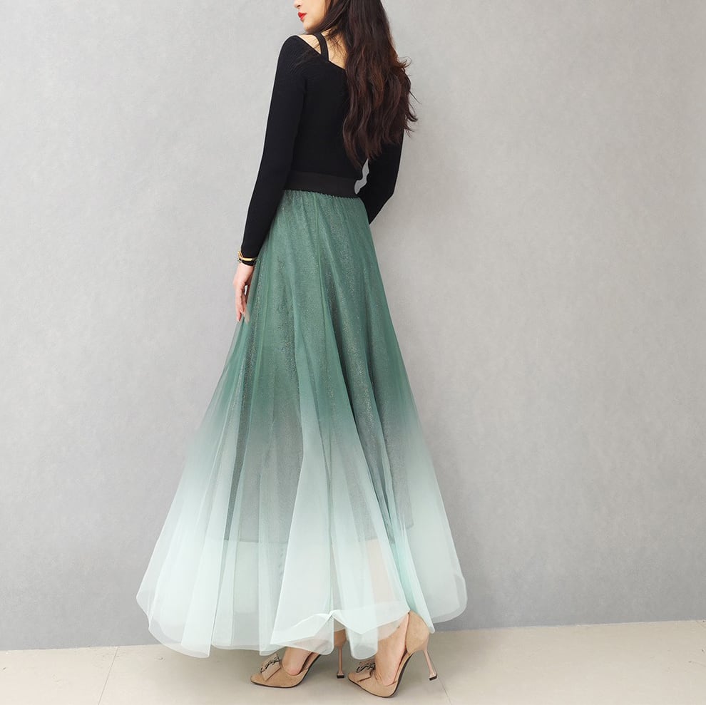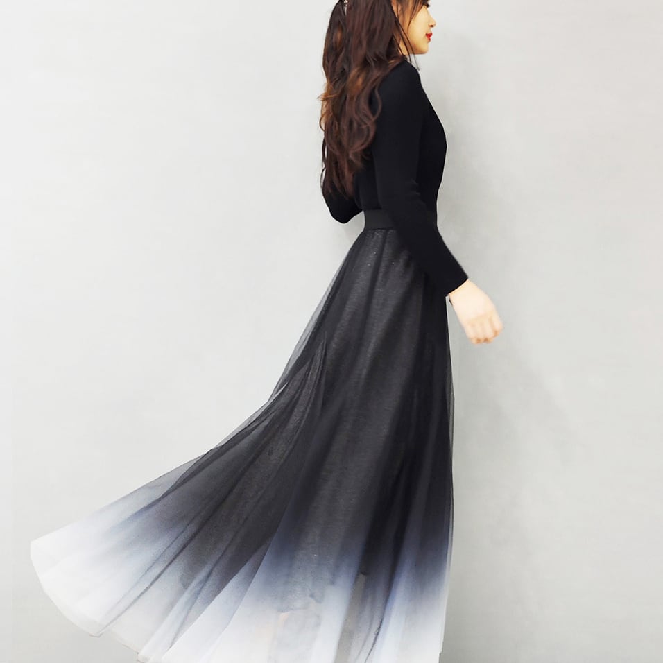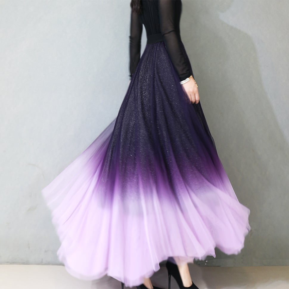 星空ロングスカート ・グラデーション・チュール・グリッター - Adhil(全4色)